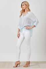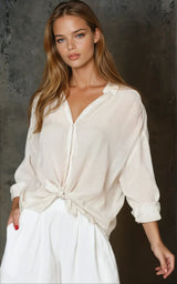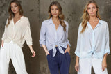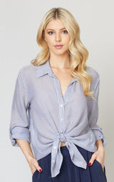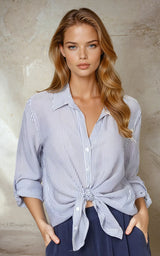 Heather Tie Front Cupro Stripe Top