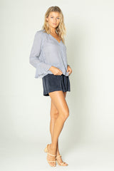 Crew Stripe Long Sleeve Ruffle Top