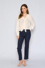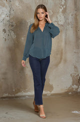 Mandarin Collar Button Down Blouse
