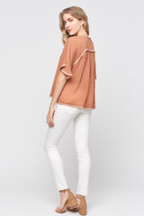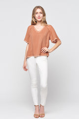 Short Sleeve V-neck Fray Top