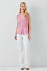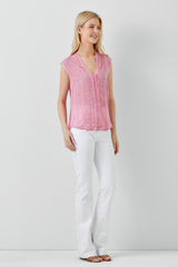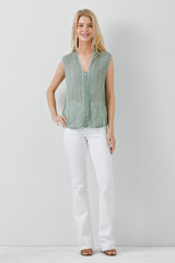 Sleeveless Embroidery Button Down Shirt