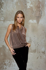 Date Night Silk Velvet Wrap Front Surplus Top