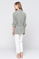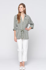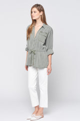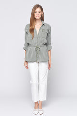 Long Sleeve Drawstring Button Down Shirt