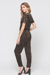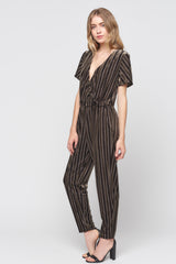 Wrap Front Velvet Stripe Jumpsuit