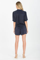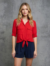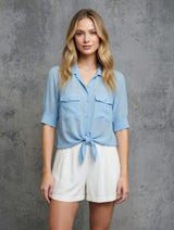3/4 Sleeve Button Down Mixed Media Shirt