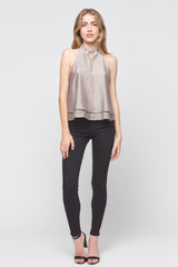 High Neck Double Ruffle Top