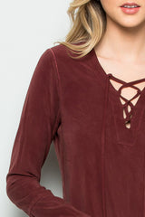 Long Sleeve Lace-up Dress