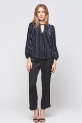 Velvet Stripe Long Sleeve Keyhole Top